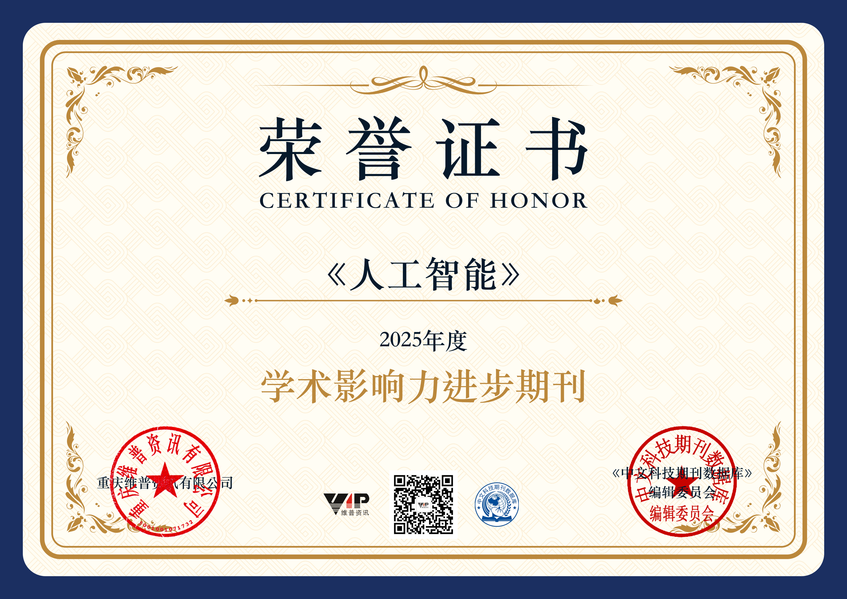 近日,《中文科技期刊数据库》正式发布“期刊年度影响力报告(2025版)”,并揭晓2025年度“学术影响力进步期刊”奖项评选结果。经综合评定,《人工智能》影响力指标显著提升,荣获“学术影响力进步期刊”奖项。